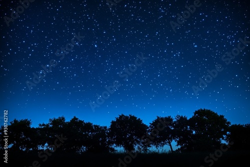 Fototapeta premium Silhouettes of trees against a clear night sky filled with countless stars