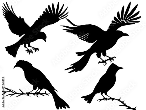 © billy, Obraz premium silhouettes of various types of birds perching and flying