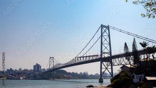 © Fotos GE, Naklejka premium Silhueta da Ponte Hercílio Luz, Florianópolis, florianopolis, Santa Catarina, Brasil