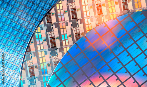 Fototapeta premium Silicon Wafers with microchips used in electronics for the fabrication of...