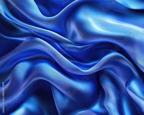 Fototapeta premium Silk Blue Waves Abstract Art Illustration in Soft Curve Shape