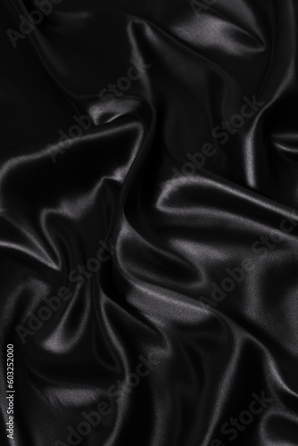 Obraz premium Silk fabric, abstract wavy black satin fabric background.