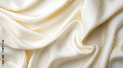© Thawatchai, Obraz premium Silk fabric cream satin drape cloud dancer 2026 elegant flowing texture soft luxurious