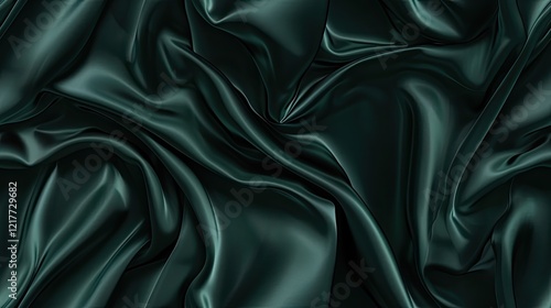 © Palette_Dreams, Obraz premium Silk fabric, dark green color, dark background, flowing, silk material
