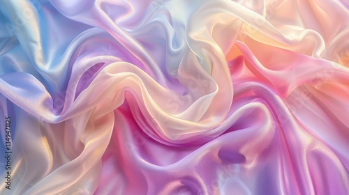 Fototapeta premium Silk fabric glows in dreamy pastels, shifting hues under soft lighting for a...