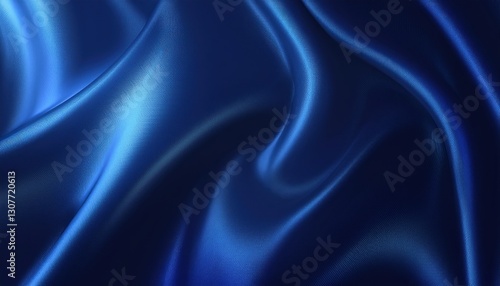 Obraz premium Silk satin fabric in deep navy blue. Abstract dark, elegant folds creating a smooth, luxurious background with soft light reflections and space for design or text overlay.