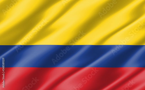 Fototapeta premium Silk wavy flag of Colombia graphic. Wavy Colombian flag 3D illustration. Rippled Colombia country flag is a symbol of freedom, patriotism and independence.