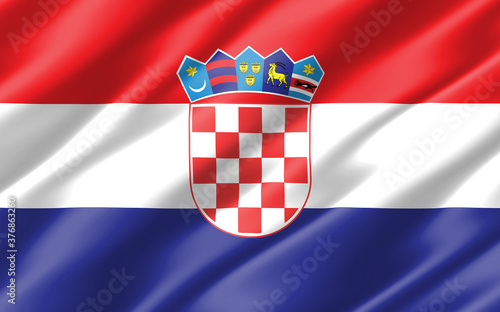 Naklejka premium Silk wavy flag of Croatia graphic. Wavy Croatian flag illustration. Rippled Croatia country flag is a symbol of freedom, patriotism and independence.