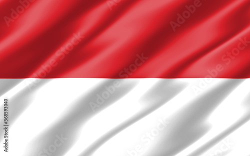 Fototapeta premium Silk wavy flag of Indonesia graphic. Wavy Indonesian flag 3D illustration. Rippled Indonesia country flag is a symbol of freedom, patriotism and independence.