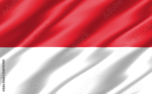 Fototapeta premium Silk wavy flag of Monaco graphic. Wavy Monegasque flag 3D illustration. Rippled Monaco country flag is a symbol of freedom, patriotism and independence.