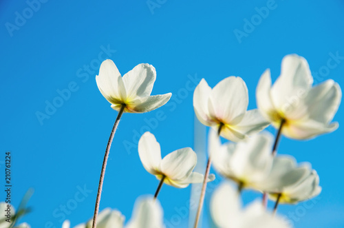 © Lema-lisa, Fototapeta premium silken white flowers against a blue sky