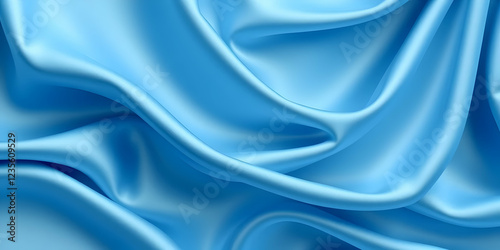 Fototapeta premium Silky blue fabric, smooth flowing texture, shimmering satin material, soft folds and curves, elegant drapery, luxurious textile, azure waves, glossy surface, gentle creases, light and shadow play, clo