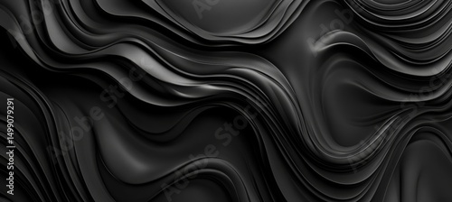 © Ilja, Obraz premium Silky Smooth Abstract Background of Black Fluid Waves. Dynamic Motion and Flowing Elegance.
