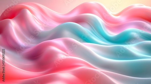 Obraz premium Silky smooth waves of pastel pink and turquoise blending gently, forming a...