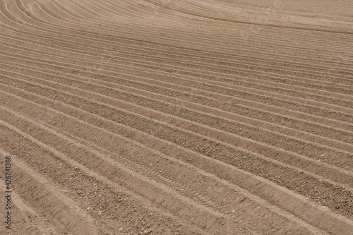 © julien leiv, Naklejka premium Sillons dans un champ de pomme de terre