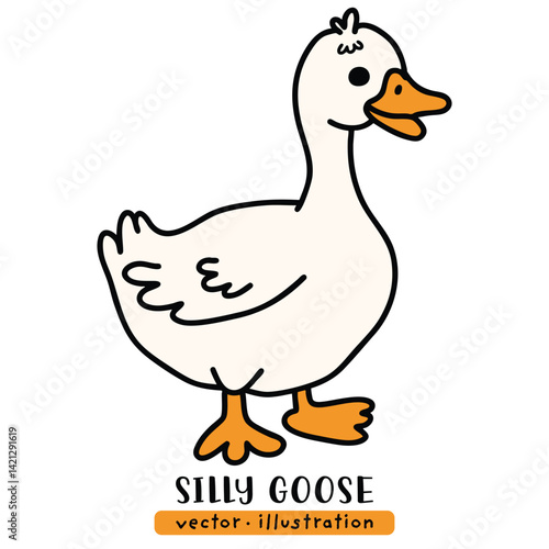 © Saltyarts design, Obraz premium Silly duck, cute goose, cartoon hand drawn vector illustration