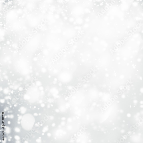 Fototapeta premium Silver abstract bokeh background with snowflake and white glittering bokeh...