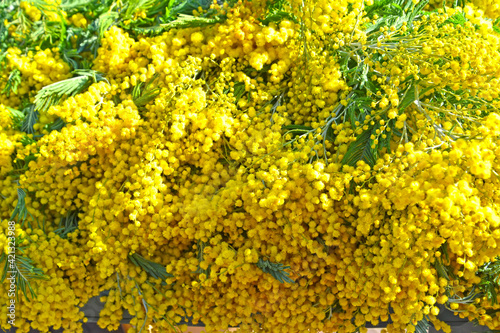 Fototapeta premium Silver acacia flowers (Acacia dealbata Link). Background