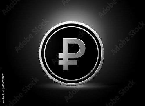 © Hammad, Obraz premium Silver And Black Rounded Russian Ruble Coin Isolated On Shiny Silver Glow Background 3d Illustration