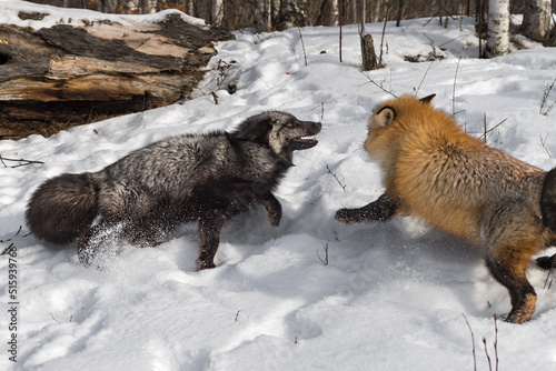 Obraz premium Silver and Red Fox (Vulpes vulpes) Tussle Kicking Up Snow Winter