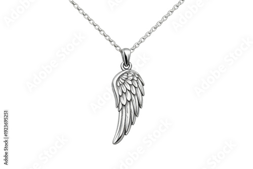 © PerfectPhoto, Naklejka premium Silver angel wing necklace pendant representing freedom and protection