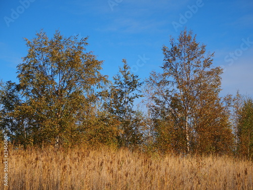© AngieC, Fototapeta premium Silver birch trees with autumn foliage at Fairburn Ings nature reserve, Yorkshire, England