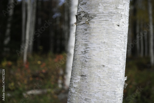 Naklejka premium Silver birch trunk closeup, in forest.