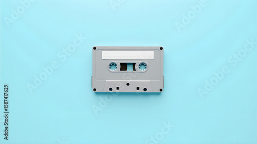 © Cozy Roman, Obraz premium Silver Cassette Tape on Bright Blue Background