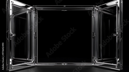 Obraz premium Silver chrome window frames are isolated on a solid black background design....