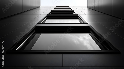 Obraz premium Silver chrome window frames are isolated on a solid black background design....