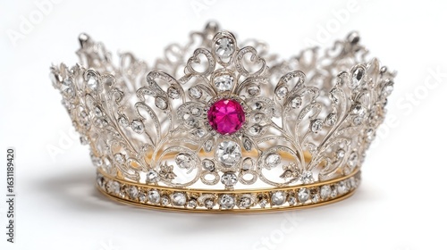 Obraz premium Silver crown tiara with pink gem jewelry headpiece luxury