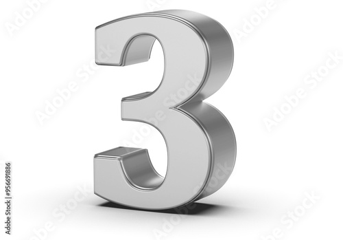 © Chetra168, Fototapeta premium Silver 3D Number 3