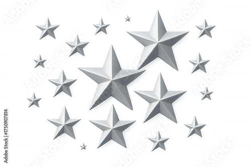Obraz premium Silver 3d stars falling on transparent background symbolizing achievement, success, celebration, and quality