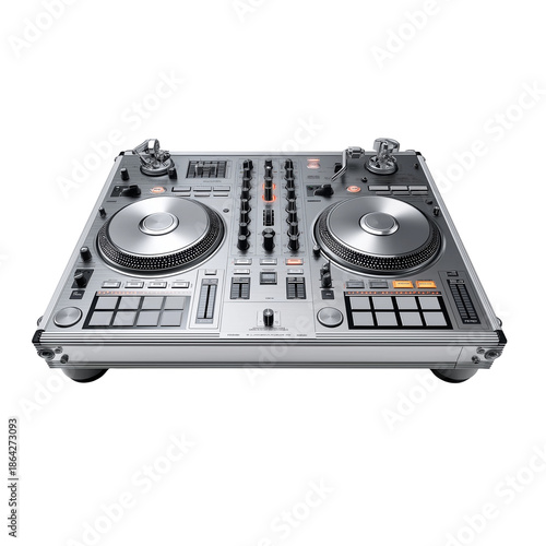 Fototapeta premium Silver DJ Mixer and Turntable System DJ equipment isolated on a transparent...