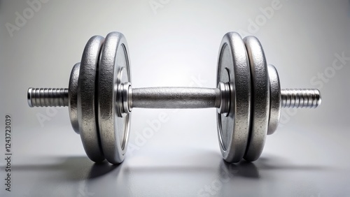 Fototapeta premium Silver Dumbbell Isolated on Light Gray Background for Fitness