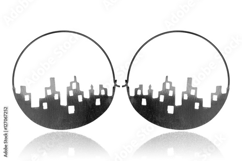 © shutterman99, Fototapeta premium Silver earrings on white background