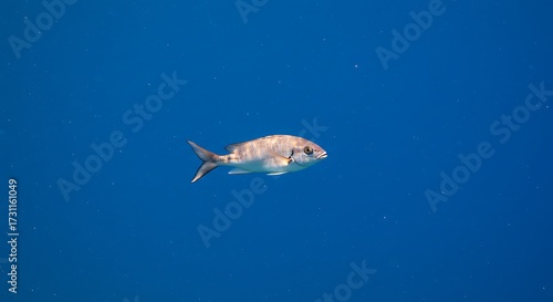 © basro, Fototapeta premium Silver fish swimming in deep blue ocean water underwater view