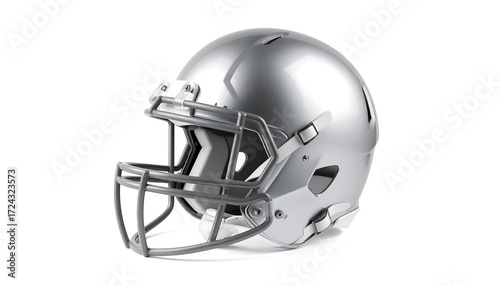 Naklejka premium Silver football helmet on a plain white background