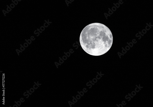 © philopenshaw, Fototapeta premium silver full harvest moon in a dark black sky