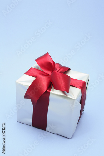 © Silkstock, Obraz premium Silver Gift Box with Red Ribbons