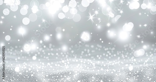 Obraz premium Silver glitter bokeh background, celebratory, festive design, website header