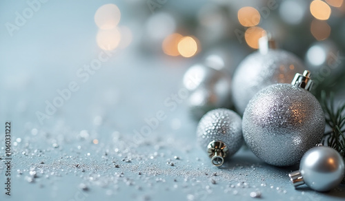 Fototapeta premium silver glitter decorations feature blurred background christmas banners