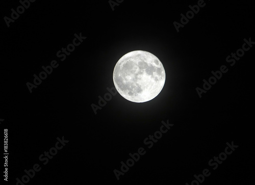 © Philip J Openshaw , Obraz premium silver glowing bright december full moon in a black sky