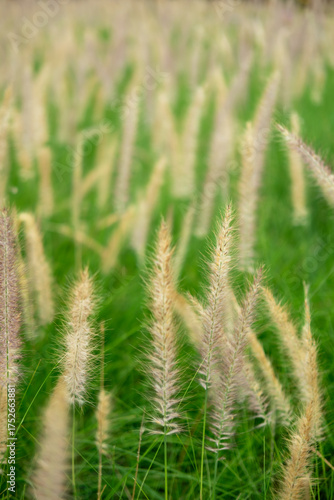 Fototapeta premium Silver Grass in a green field, soft focus