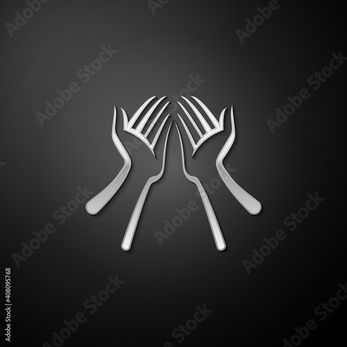 Obraz premium Silver Hands icon isolated on black background. Long shadow style. Vector.
