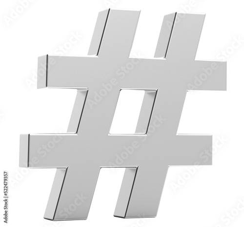Obraz premium Silver hashtag icon. 3D Illustration.