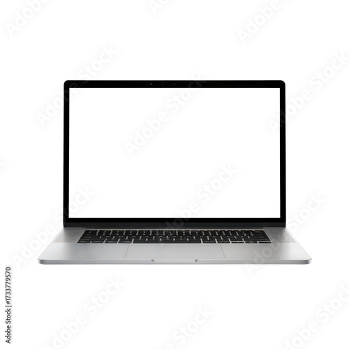 Fototapeta premium Silver Laptop Computer with Blank White Screen on Black Background technology device isolated on a transparent background