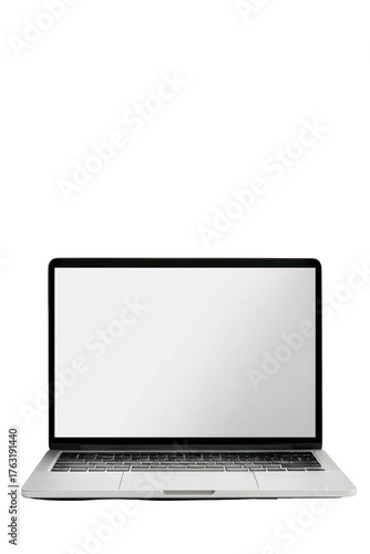 © Layar, Fototapeta premium Silver laptop with a blank white screen on black