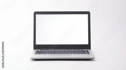 Fototapeta premium Silver Laptop with Blank White Screen on White Background