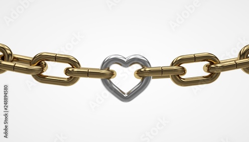 Obraz premium Silver link with heart shape, golden chain